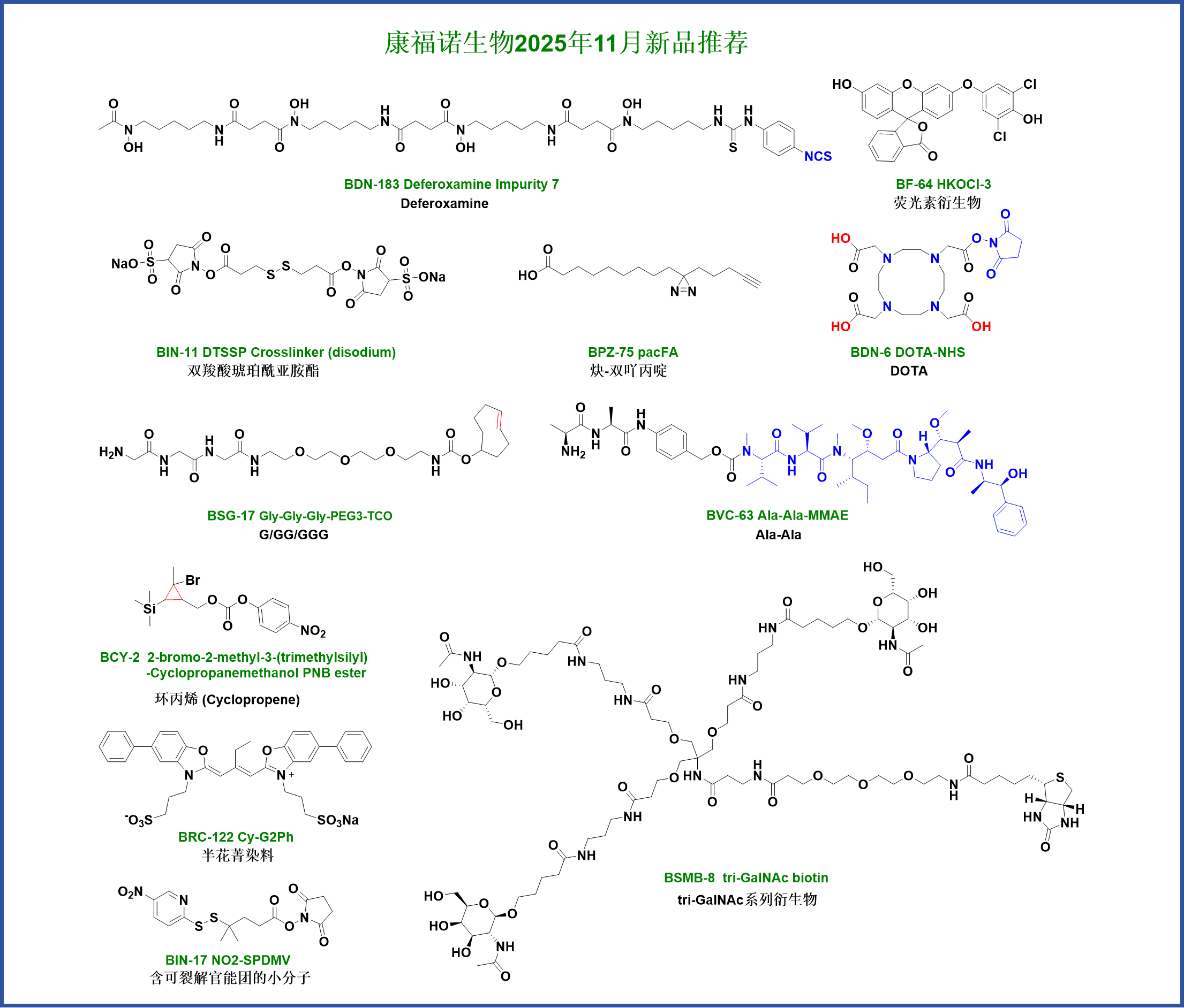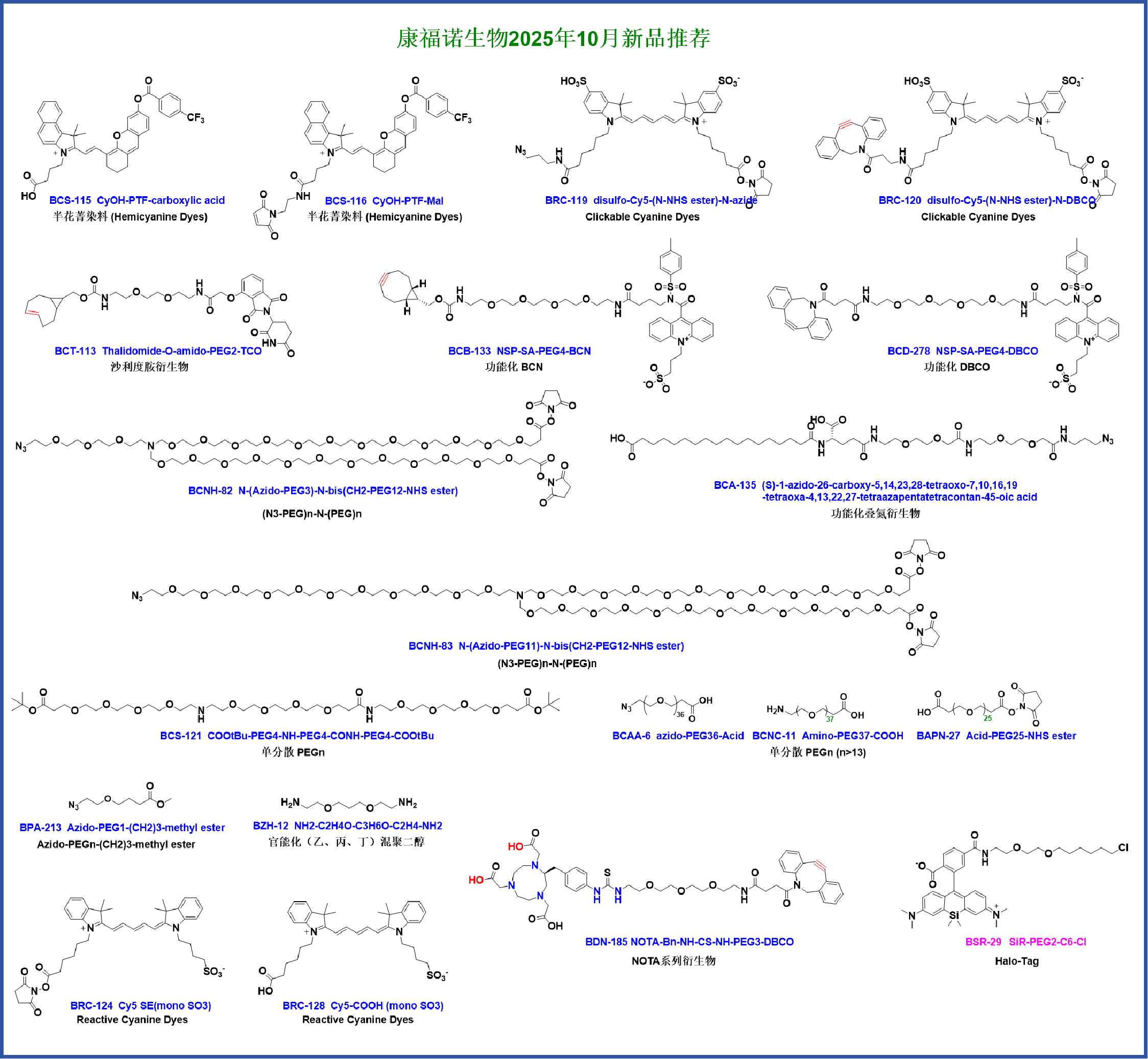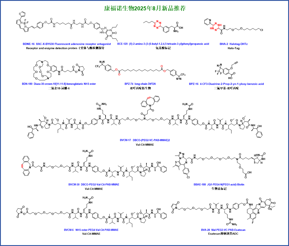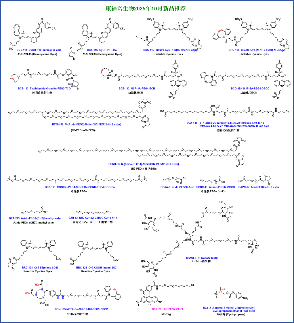 The company possesses core technologies in products such as bioorthogonal chemistry (DBCO, BCN, TCO, Tz, Azide, Alkyne), monodisperse polyethylene glycol, fluorescent dyes (BODIPY, FAM, FITC, TAMRA, Cyanine, SIR, AF647), protein crosslinkers (Mal, Diazirne), bifunctional chelating agents (DOTA, NOTA, DTPA, H3RESCA, Deferoxamine). The company has applied for 10 invention patents and has obtained authorization for 3. It can provide over 2000 types of core raw materials for biological detection reagent manufacturers and ADC/PROTACs new drug R&D enterprises. The quality and price of the products possess extremely strong competitiveness.